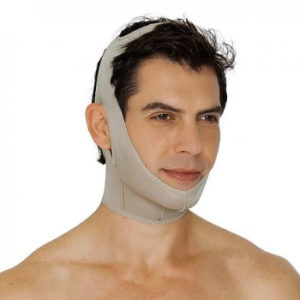 Mascara Mentoniana 7002 indicada para pós-cirurgia plástica de redução ou correção de mento fabricada com poliamida de alta qualidade.